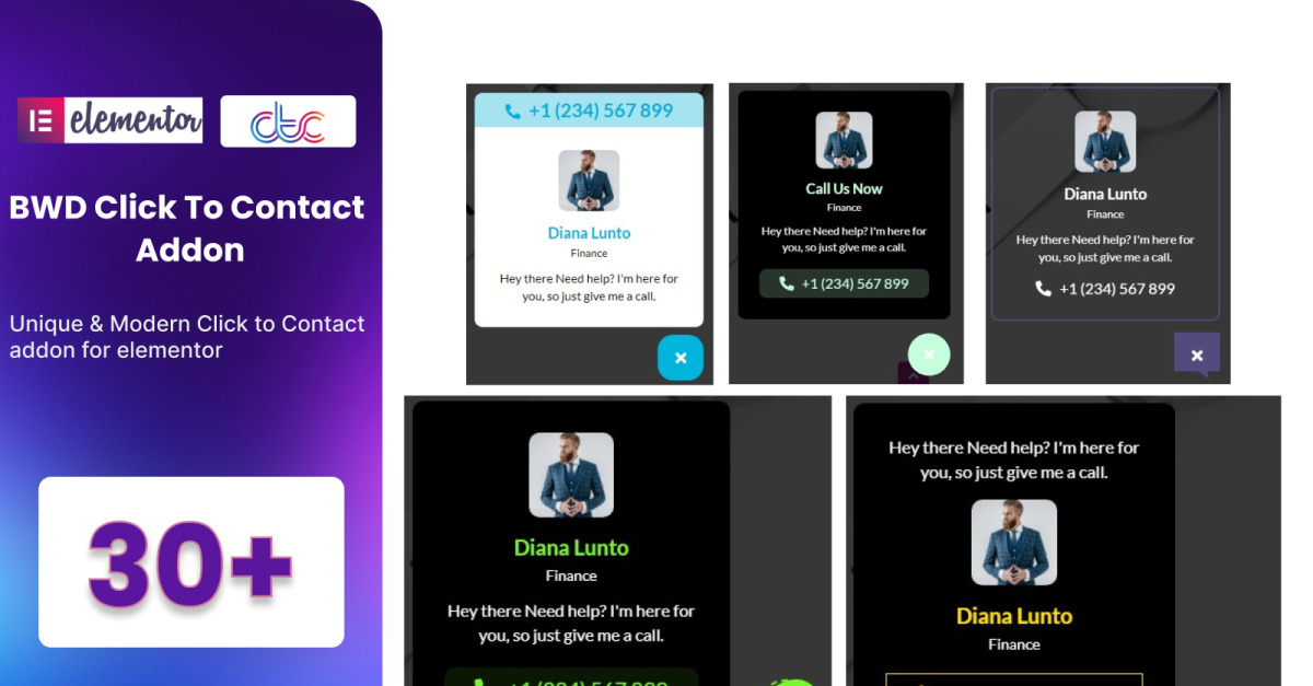 单击以联系 Elementor 的 WordPress 插件