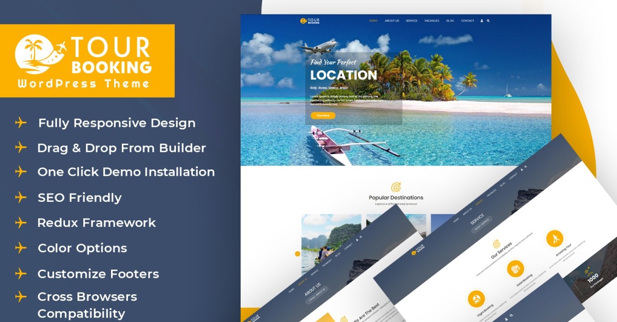 旅游预订是您的旅游预订或搜索网站的绝佳主题,可提供您的旅游业务所需的一切。