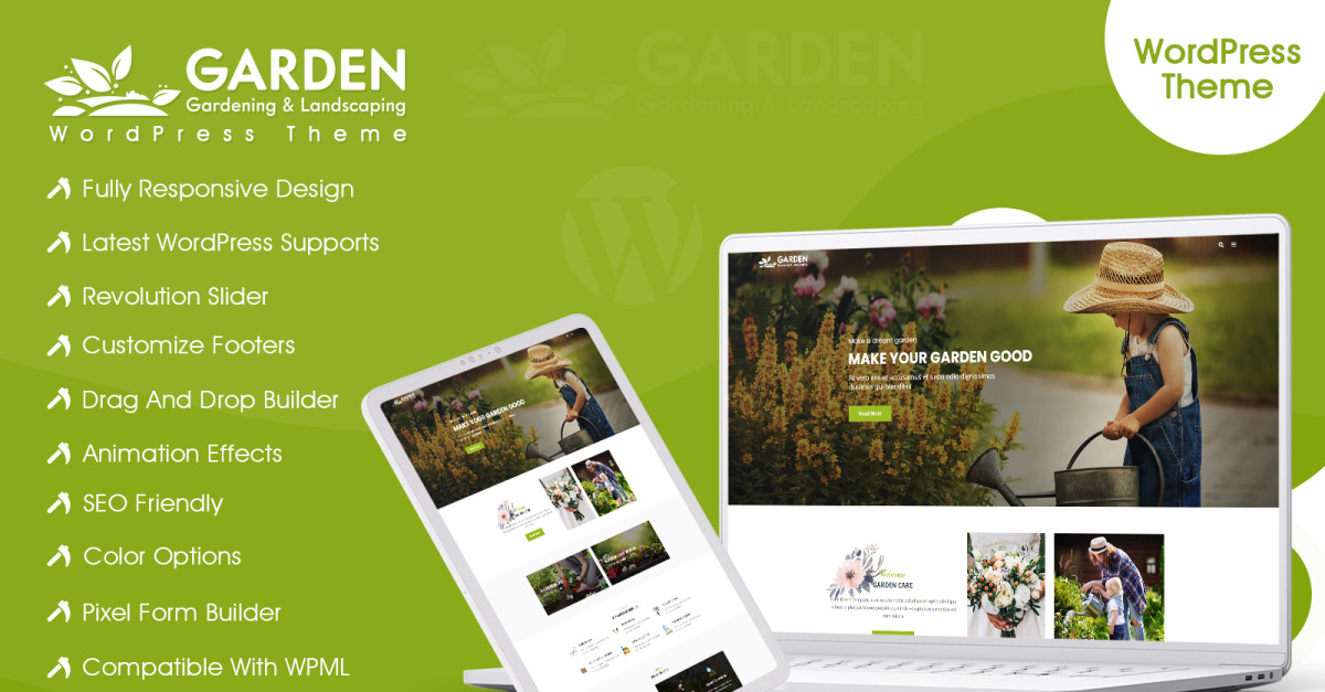 花园 — 园艺和景观美化 WordPress 主题是您眼睛的享受。它经过精心开发,可与您通过出色的园艺和景观美化服务创造的环境相匹配。这是一个多用途电子商务主题,可以很好地执行您提供农业、花园维护、园艺、园林绿化、栽培等服务的想法。