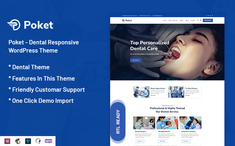 Poket是一个新的牙科响应式 WordPress 主题。其相同和不同的模型以及快速目标对象使这个主题值得所有牙医的喜欢。这个 WP 主题是为了纪念牙科和尖牙服务的真实需求而形成的。这个WP主题在我们的演示中元素样式很多,设计独特,内页设计精巧。该主题适用于牙科诊所、医生、牙科诊所、百年、药房、医院、医生。良好的功能和新的外观,以及您网站的可用性,使您的牙科网站变得非常自然和直观。