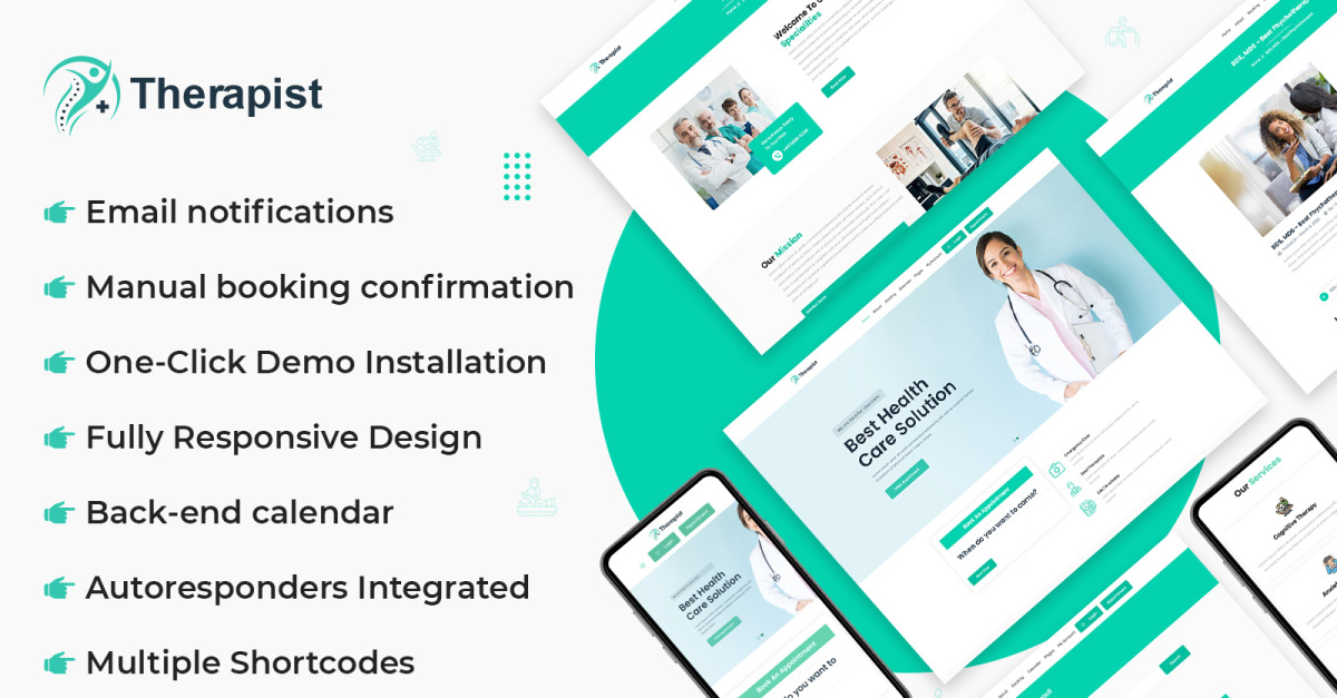 治疗师 - 医生预约 WordPress 主题将为用户建立网站,以便用户以无忧的方式与医生、治疗师、医师、执业医师、外科医生、医务人员等安排预约。