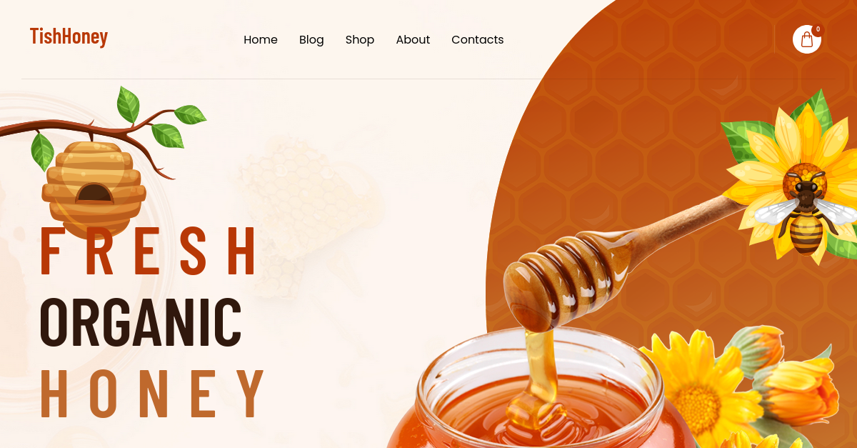 TishHoney 专为带有 WooCommerce 插件的 Honey Store WordPress 设计。该主题带有一个内置的主页滑块,每侧都有不同的图像以及默认的蜜蜂、蜂巢和蜂蜜图像。