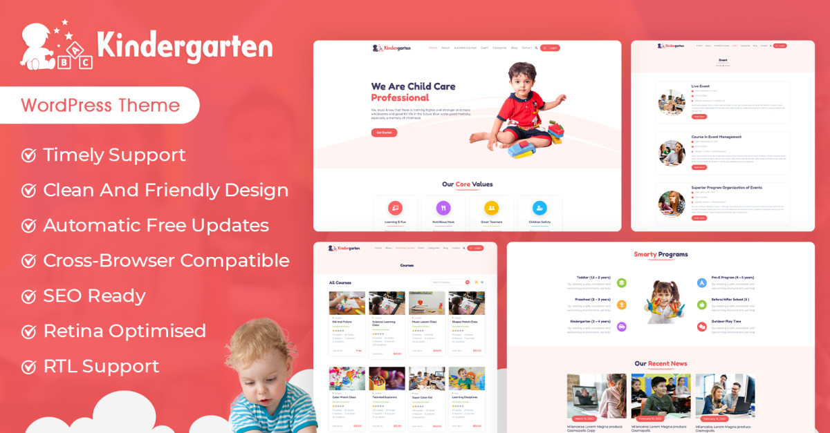 幼儿园主题也可以用作儿童日托信息网站,通过有效利用博客部分来分享有关儿童保育以及心理和社会发展领域进展的相关新闻和博客。