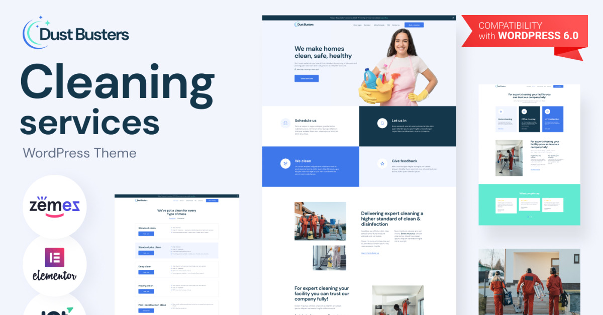 Dust Busters - 清洁服务业务 WordPress 主题具有许多高科技优势,使该主题被认为是最好的主题之一!