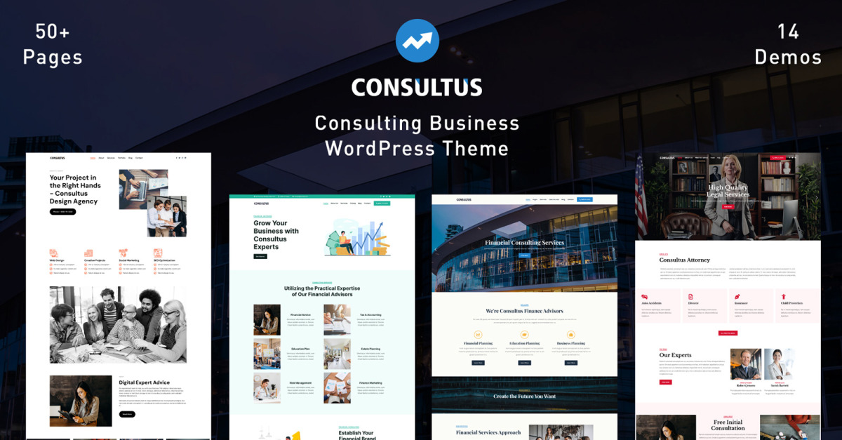 Consultus 是一款现代、干净、简单且灵活的咨询业务 WordPress 主题。该主题为创建具有专业外观的商业网站演示提供了出色的启动。它是为商业和咨询服务创建的,例如业务咨询、财务咨询、业务顾问、营销咨询、投资咨询、广告、财务顾问和会计服务。该主题附带各种精心设计的网站演示,以满足所有业务需求。所有演示页面均使用Elementor Page Builder插件设计。