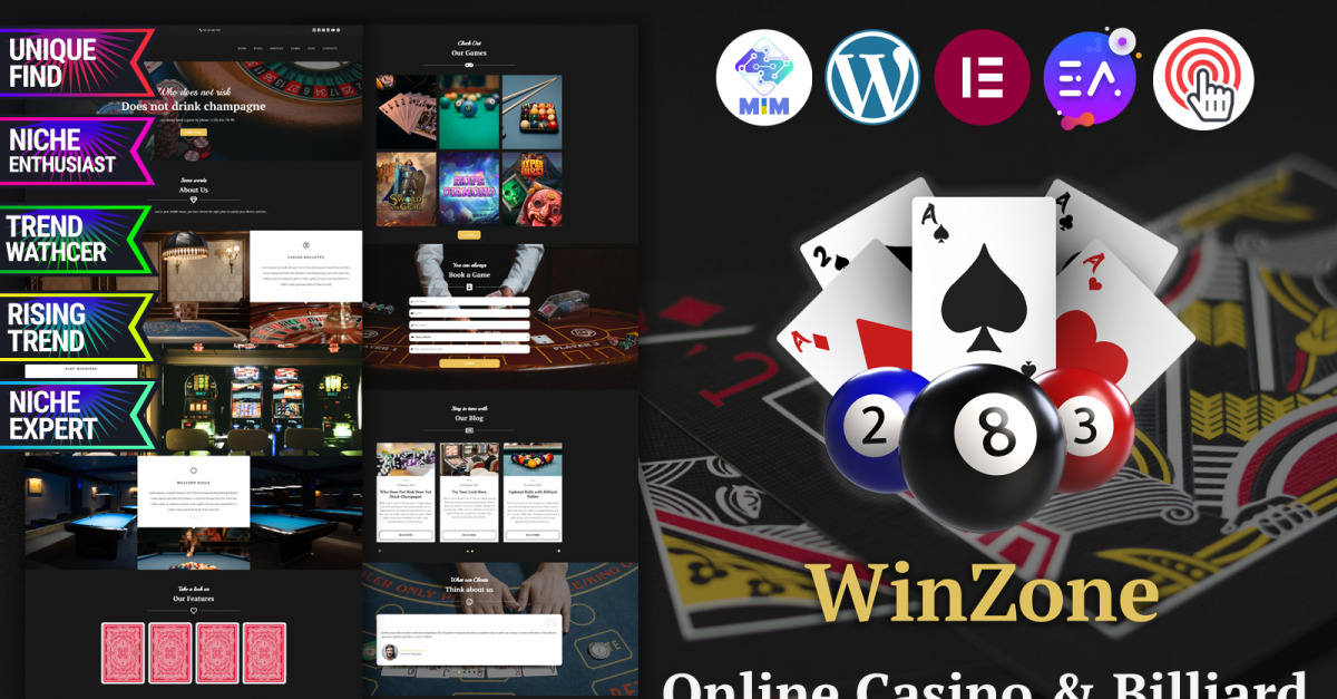“WinZone”是一个适合任何想要释放玩家潜力并激发客户兴奋的人的主题。如果您需要为您的新在线赌场设计一个主题,您喜欢赌博(轮盘赌、扑克、偏好和其他纸牌游戏),或者您是台球游戏的鉴赏家 - 这个主题适合您!