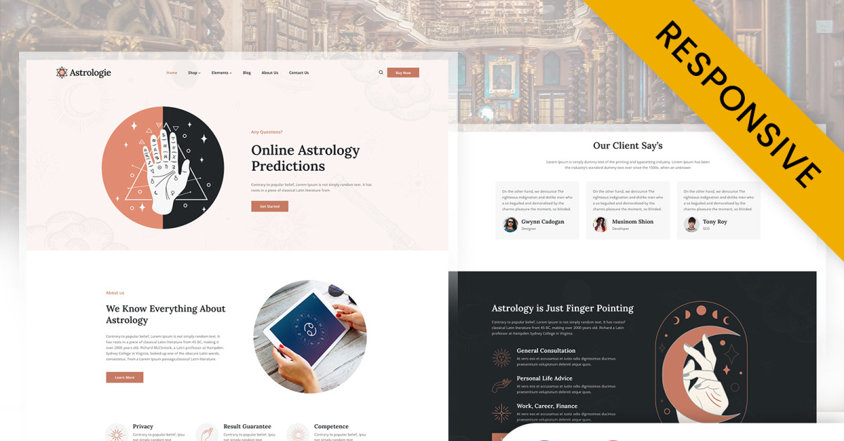 Astrologie 是一个美观且引人入胜的 WordPress 主题,专为占星事件、十二生肖和星座分析服务而开发。使用 Elementor Builder 插件,您无需任何编码知识即可轻松设计和管理站点的部件。 Atrologie 改进您的移动网站和搜索引擎优化 (SEO)。此外,该模板对于任何工业专业都很灵活,并且可以通过多种方式进行定制。