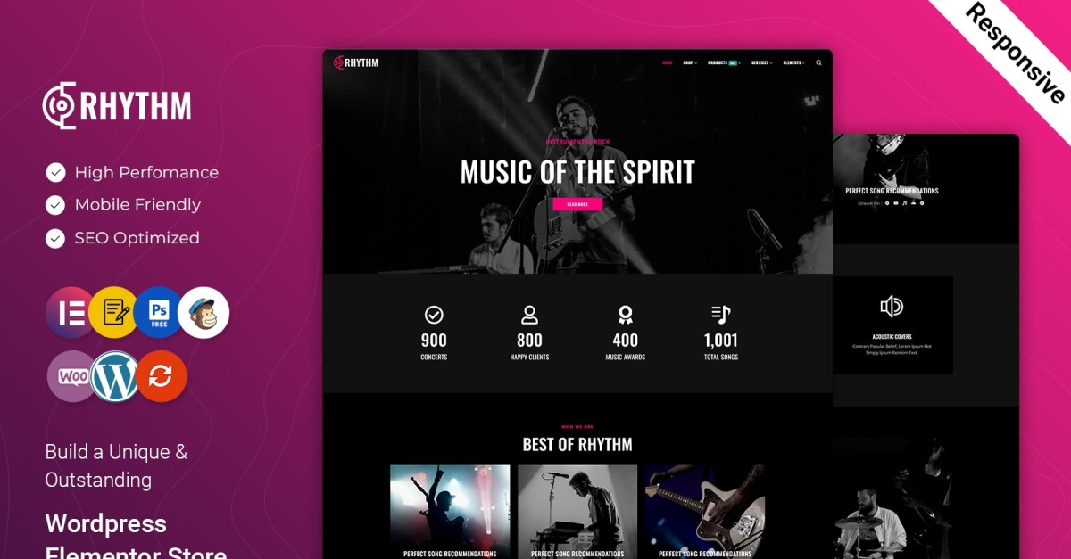 Rhythm - 音乐 WordPress Elementor 主题专为吉他、音乐、音乐家、声学、艺术家、专辑、音乐会、流派、乐器、曲目、甲板、乐队、歌曲、播放列表、乐队、DJ、网络标签或艺术家设计,用于展示他们的作品语气,也可用于希望扩大受众并建立业务的个人作品集。该模板包含现代、深色、优雅、创意、专业和独特的布局。由于所有内容都集成到设计系统中,因此要更改设计屏幕上的任何内容,您只需更改设计系统中的颜色、徽标、文本或其他元素即可。