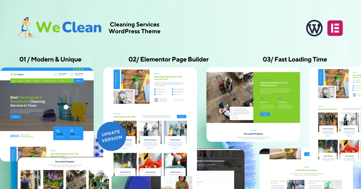 WeClean 是一款先进的清洁服务 WordPress 主题,基于强大的 Elementor 页面构建器平台精心打造。WeClean 专为满足专业清洁服务提供商的特定需求而量身定制,凭借其直观的界面和可自定义的功能,提供流畅的用户体验。凭借丰富的预设元素和模板,用户可以轻松创建精美的网站,展现其清洁业务的独特之处。无论是住宅、商业还是专业清洁服务,WeClean 都能帮助用户通过美观的布局和引人入胜的内容,展示其专业技能,并吸引潜在客户。