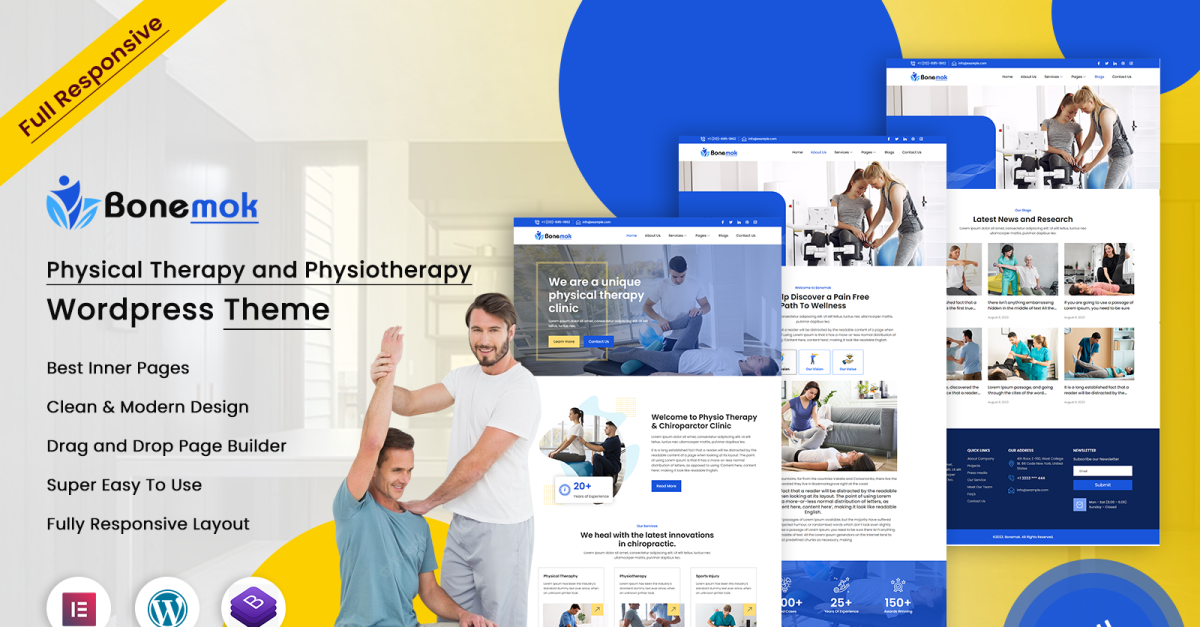 使用 Bonemok 提升您的物理治疗和物理治疗服务——终极 WordPress 主题,旨在激励网站设计师、开发人员和雄心勃勃的企业家。 Bonemok 专为支持您的治疗任务而定制,简化了您的治疗服务的网站创建。其专门构建的模板完全适合您的专业知识,而可定制的功能使您能够展示您独特的方法。从康复技术到健康计划,轻松展示您的服务。凭借以用户为中心的元素和响应式设计,Bonemok 保证跨设备的无缝体验。今天就加强您的实践——利用 Bonemok 的潜力,看着您的物理治疗和物理治疗网站蓬勃发展,促进所有人的健康和福祉。