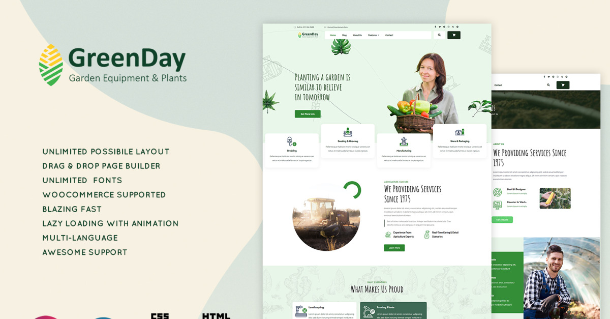 我们对卓越的承诺在Greenday中得到体现,这一主题是根据农业和园艺行业的独特需求量身定制的。这一优质主题以其干净、绿色的美感,浓缩了大自然宁静的精髓,为您的观众带来耳目一新的视觉体验。