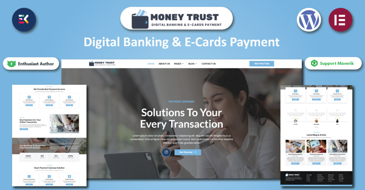 Money Trust - 数字银行和电子卡支付 WordPress Elementor 模板