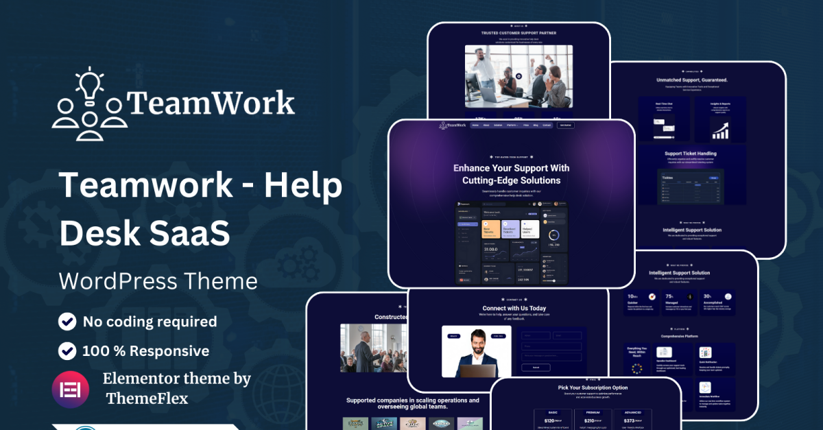 Teamwork 主题提供了专为帮助台和支持服务网站设计的全面 WordPress 解决方案。其时尚、响应迅速的布局可确保为客户和支持人员提供流畅且引人入胜的用户体验。该主题强调灵活性,提供可自定义的布局和强大的功能,如集成票务系统和实时通信工具。Teamwork 旨在增强协作并简化支持请求的处理,使其成为希望提高效率的企业的理想选择。无论是从头开始还是改造现有平台,Teamwork 主题都使您能够轻松提供出色的客户支持。