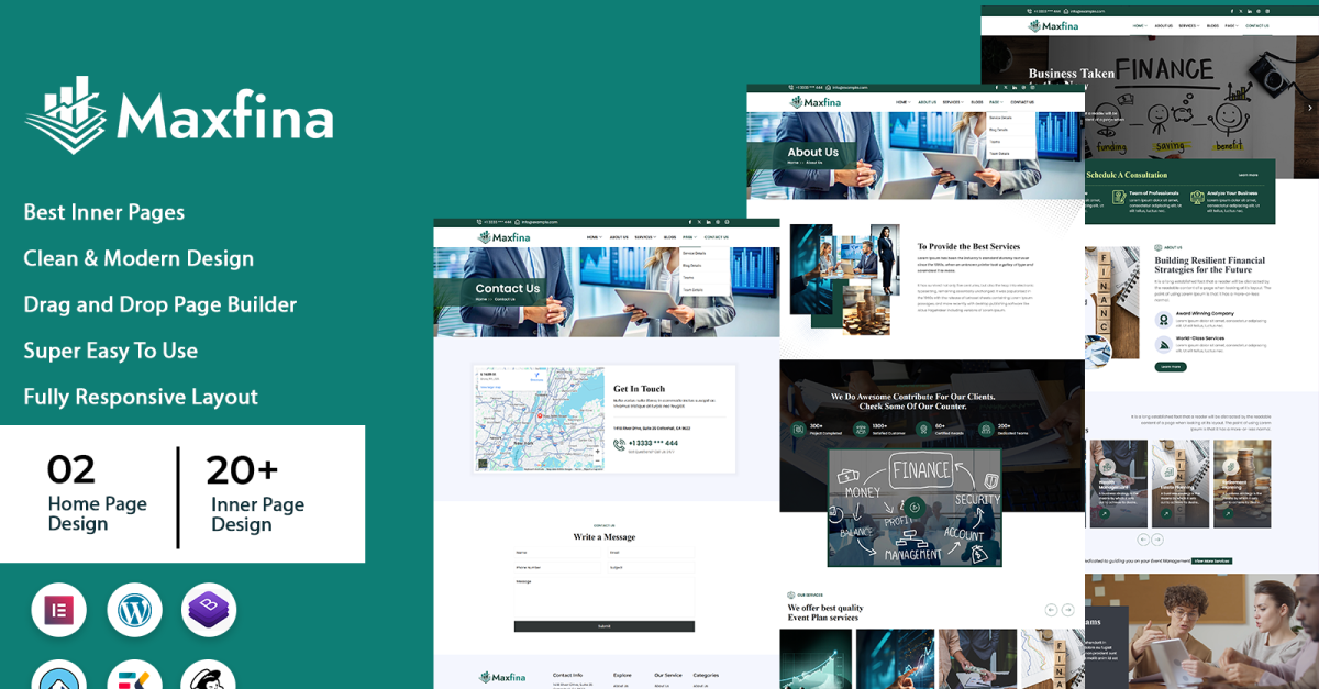 Maxfina 是一款多功能且时尚的 WordPress 主题,专为金融、咨询和商业网站而设计。这款主题非常适合应用程序开发人员、企业主和个人,可让您构建一个独特的专业网站,以反映您品牌的专业知识和可靠性。凭借完全可自定义的布局、直观的设计工具以及满足金融和咨询需求的集成功能,Maxfina 可让您有效地展示您的服务。它反应灵敏、搜索引擎友好且易于管理,非常适合寻求现代、功能齐全的网站的企业。借助 Maxfina 精致、用户友好的界面,在您的行业中脱颖而出并吸引客户。