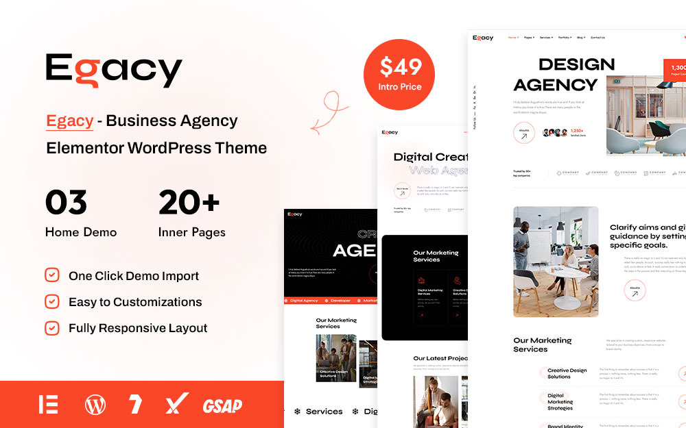 Egacy-Agency Portfolio Elementor WordPress 主题