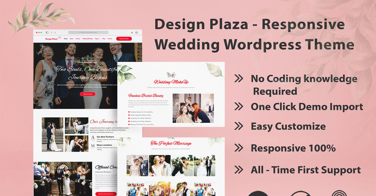 DesignPlaza 正在成为最好的 WordPress 婚礼模板,从婚礼到献给爱情的精美页面。这款完全响应且用途广泛的主题是情侣、婚礼策划师和活动协调员的必备解决方案,它可让您设计一个引人入胜的网站,反映您独特一天的魅力,同时具有直观和轻松的可用性。