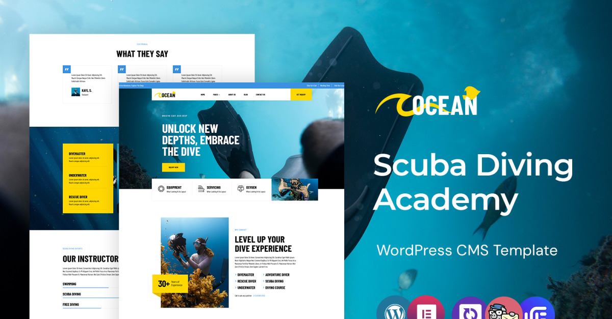 海洋 - 水肺潜水学院和探险 WordPress Elementor 主题