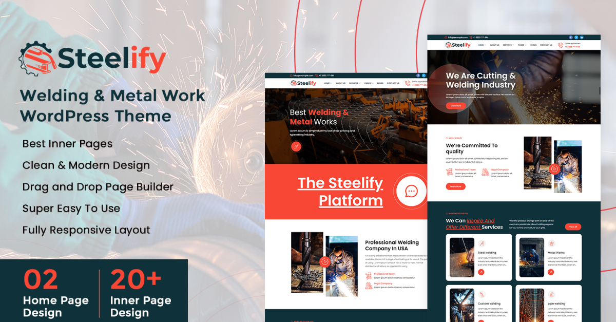 Steelify 是一款功能强大且专业的 WordPress 主题,专为焊接、金属制造和工业服务而设计。它是应用程序开发人员、企业主和个人的理想选择。 Steelify 提供了一个强大的平台来构建一个独特、高影响力的网站,以突出您的技能和服务。此主题具有可自定义的部分,用于展示项目、客户推荐和服务详细信息。它非常适合创建值得信赖的在线形象。 Steelify 响应迅速且对 SEO 友好。它可确保在所有设备上均具有出色的性能。对于旨在吸引更多客户的金属加工企业来说,使用 Steelify 是一个不错的选择。