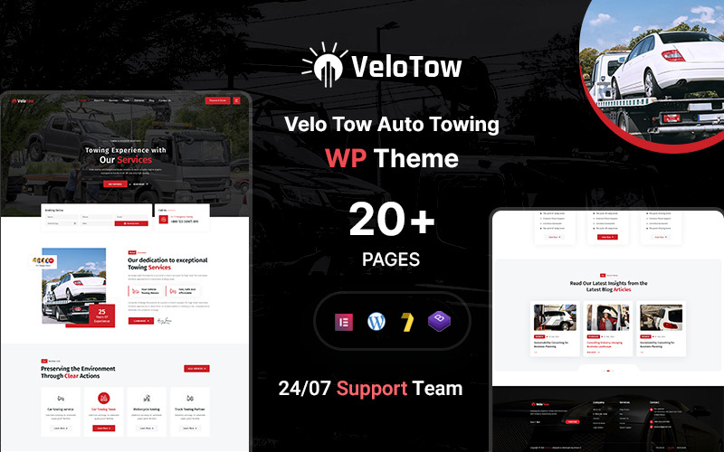 Velotow 是一款现代、强大且功能丰富的汽车维修和汽车拖车技工 WordPress 主题,专为汽车修理厂、拖车服务、汽车修理工、车辆维修中心和路边救援业务而设计。Velotow 采用Elementor 框架构建,通过其直观的拖放页面构建器确保轻松定制,让您无需任何编码知识即可创建令人惊叹的网站。