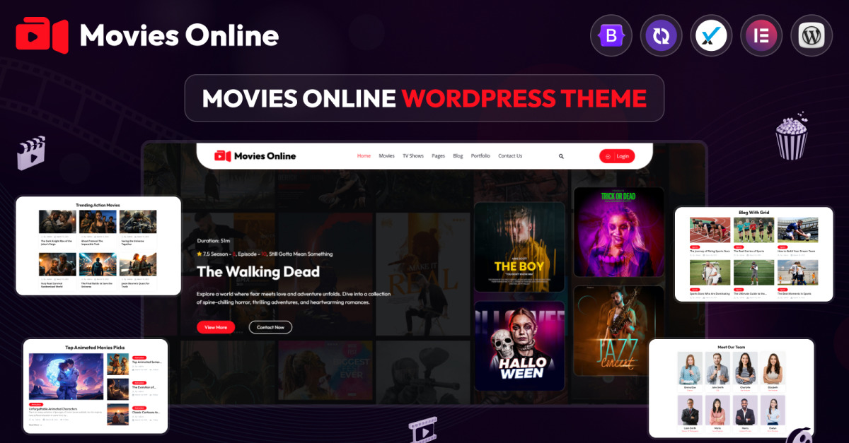 Movies Online WordPress 主题是一款美观时尚的主题,专为电影创作者、电影制作人、博主、视频博主、流媒体服务网站等设计。该主题提供引人入胜的横幅图像,并允许使用 Slider Revolution 插件创建自己的自定义横幅。它是展示电影评论、博客、短视频等网站的完美解决方案。