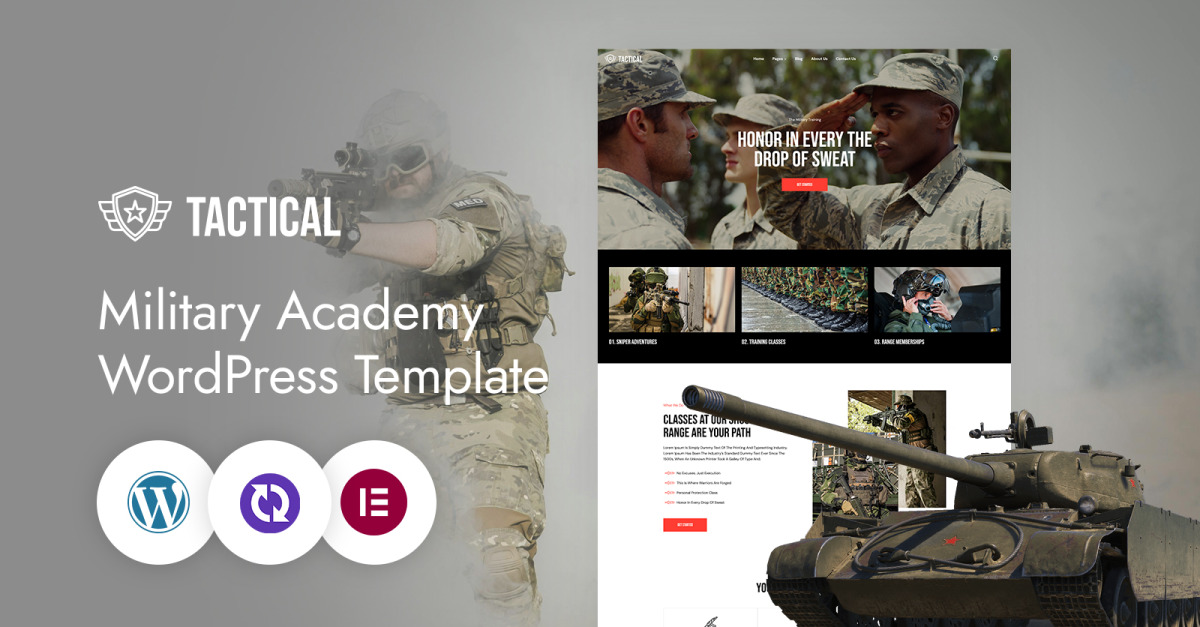 战术 - 陆军训练和军事服务 CMS Elementor 模板