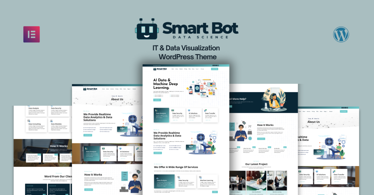 SmartBot – 一款适用于 IT、AI 和数据可视化服务的时尚 Elementor WordPress 主题。