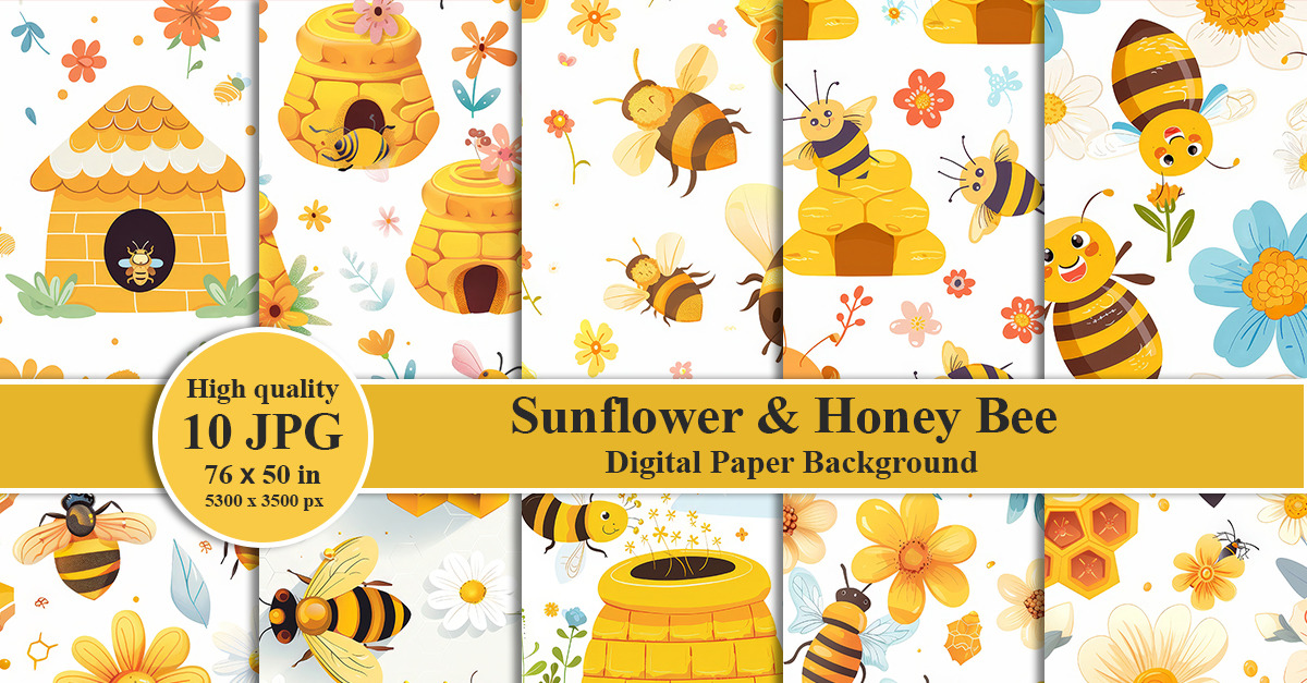 Zářivá slunečnice a včela medonosná k tisku digitální papír a pozadí vzoru