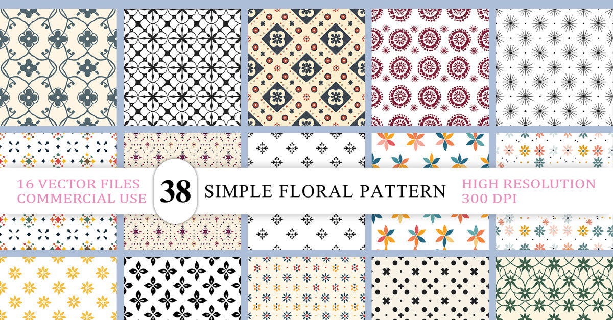 Jednoduchý květinový motiv geometrický design sada | Geometrický květinový vektorový vzor minimální ornamentální vektor