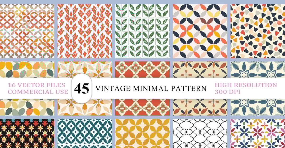 Kolekce bezešvých vzorů z poloviny století | Barevné pozadí inspirované retro | Botanický vektor