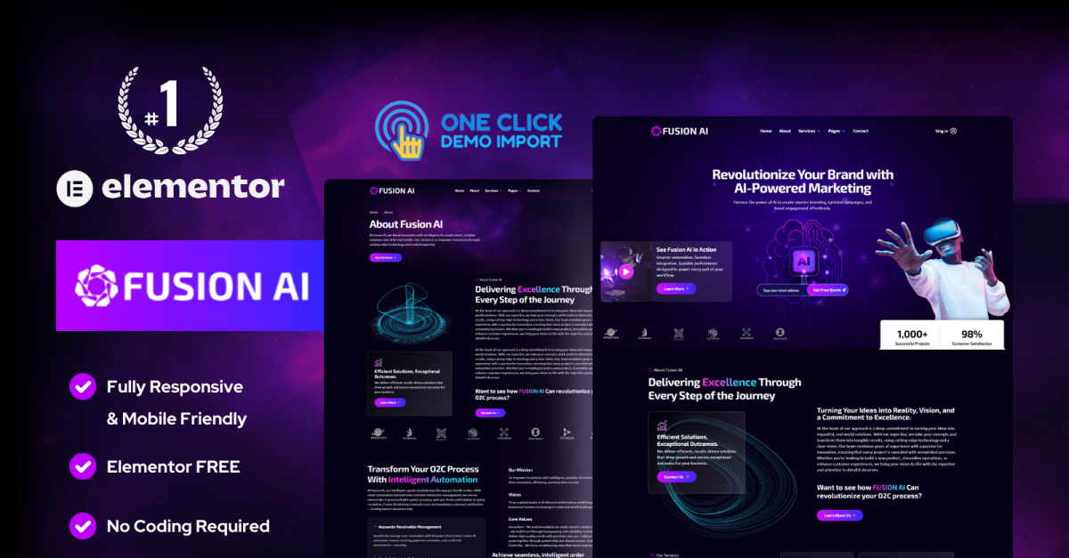 Fusion AI - Sada šablon WordPress Elementor pro marketingovou agenturu s umělou inteligencí a technologie