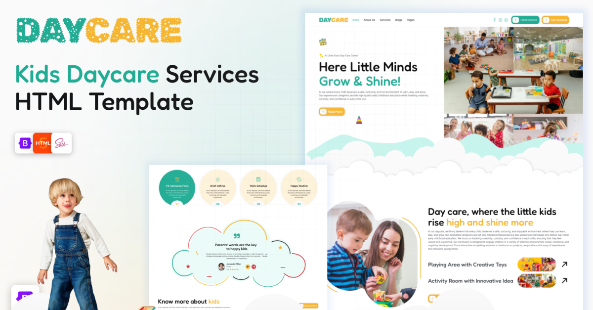 Denní péče – Šablona HTML pro dětské denní a školní péči o děti v mateřské škole