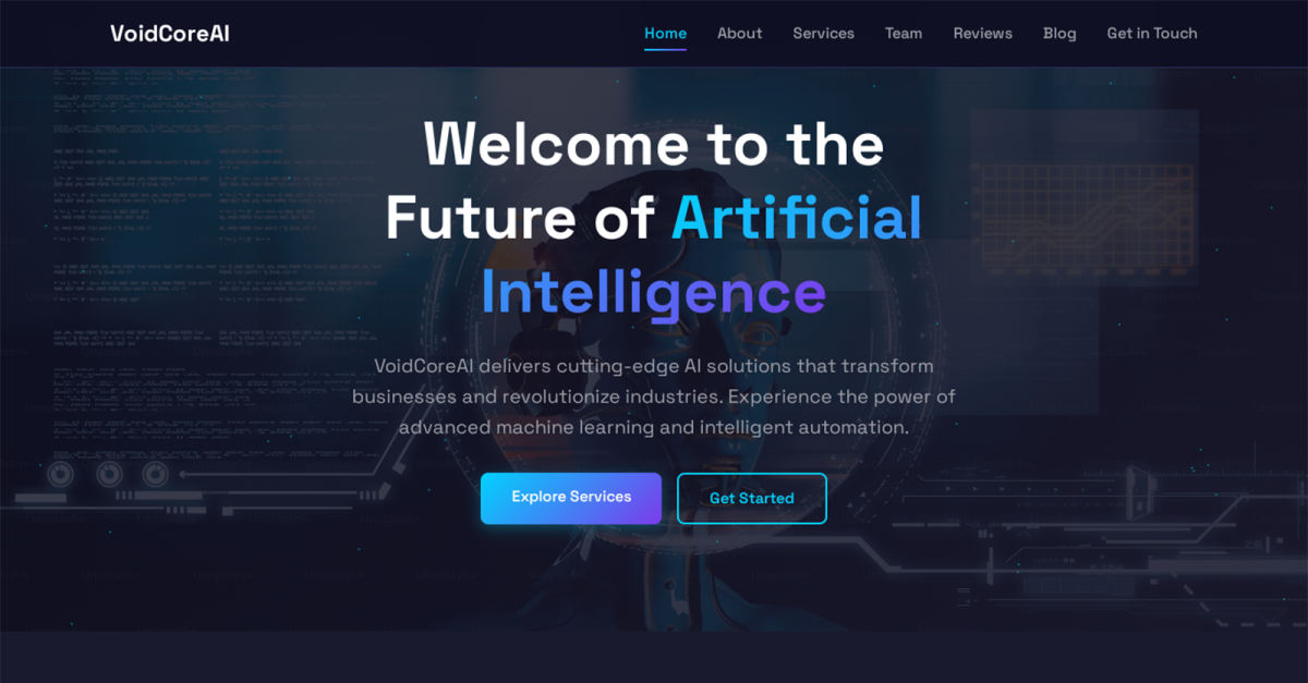 VoidCoreAI – Responzivní HTML šablona pro startupy v oblasti umělé inteligence