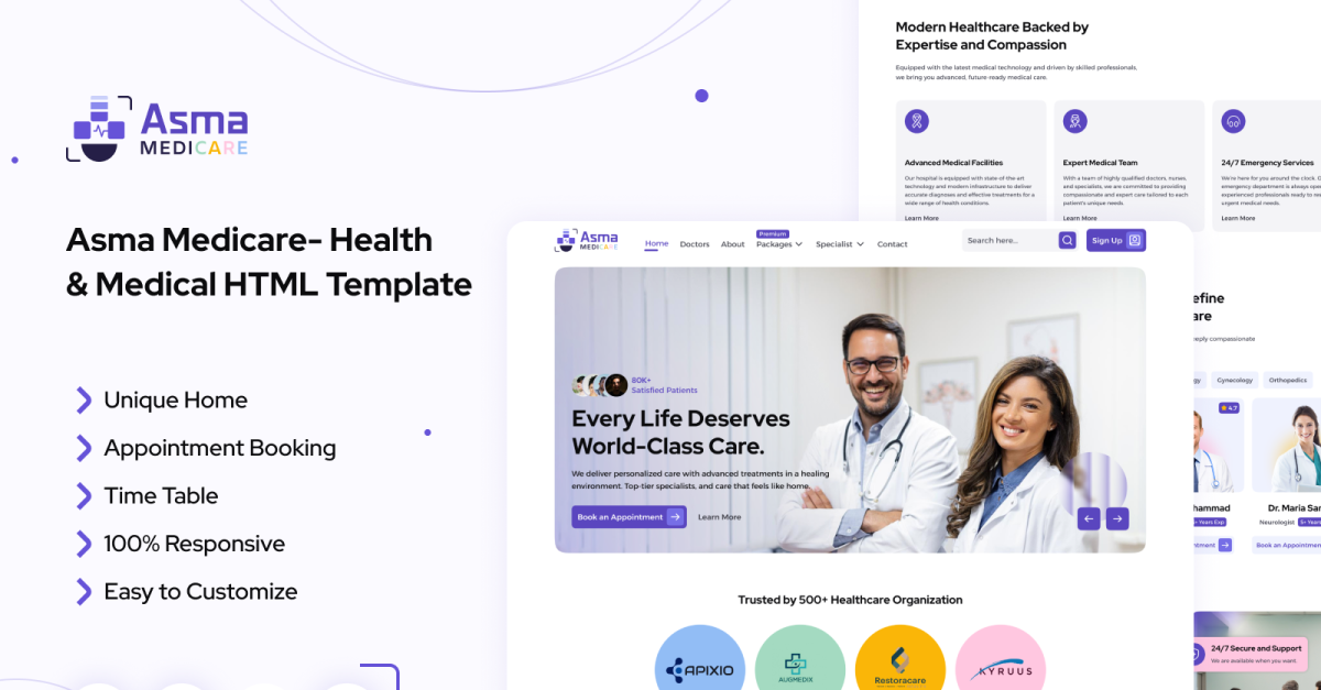 Asma Medicare – Responzivní šablona vstupní stránky HTML5 pro zdravotnictví a lékařské služby