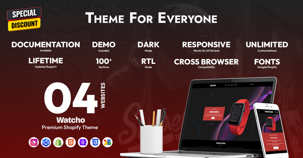 Watcho 2.0 - Šablona Shopify pro jeden produkt - RTL, tmavý režim