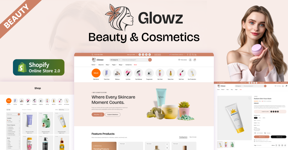 Téma Glowz – obchod s kosmetikou a kosmetikou Shopify