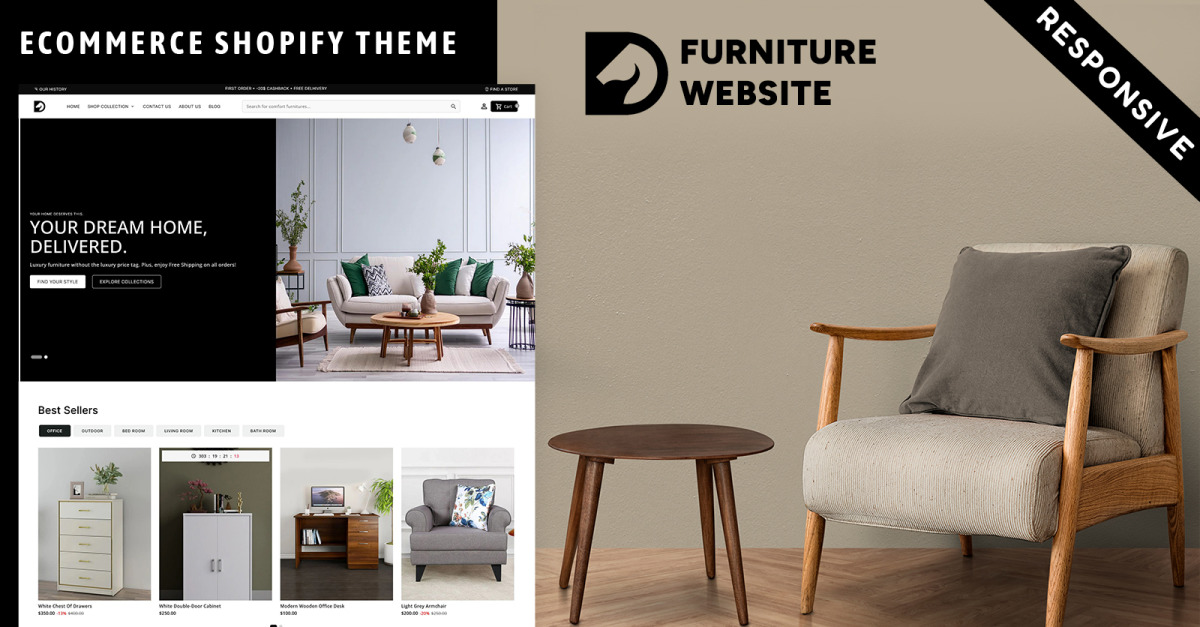 Devil – Responzivní šablona Shopify pro e-commerce s motivem nábytku