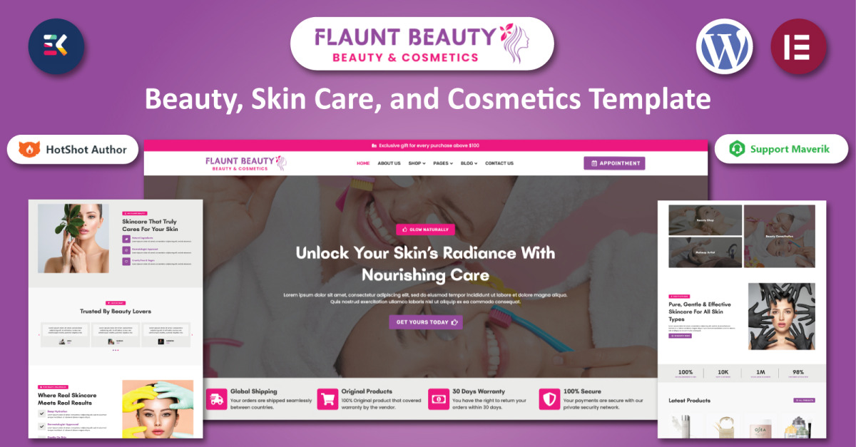 Flaunt Beauty - šablona WooCommerce Elementor pro krásu, péči o pleť a kosmetiku