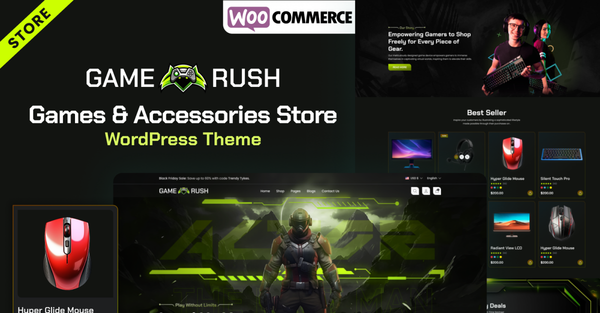 Gamerush – WooCommerce WordPress šablona pro obchod s hrami a příslušenstvím