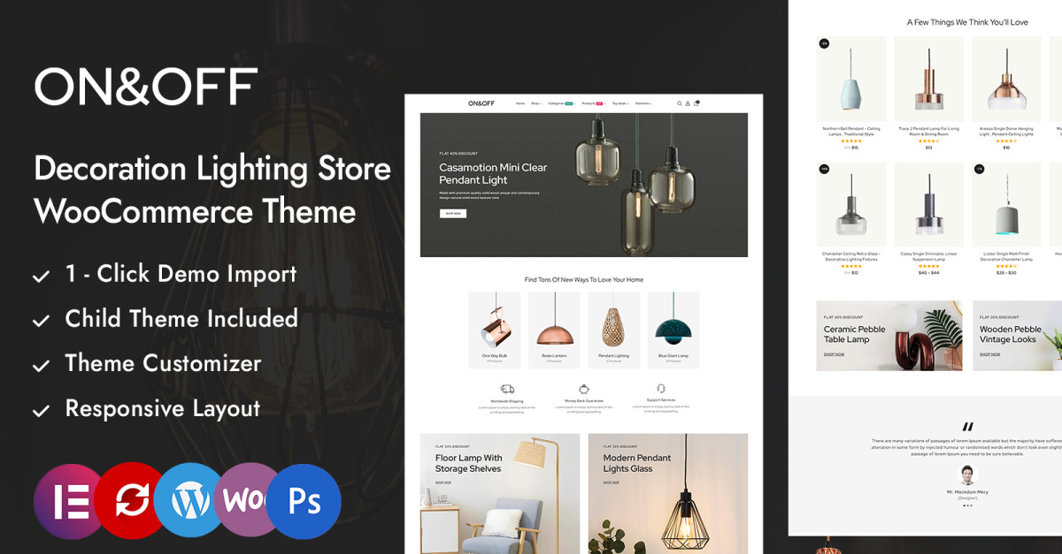 Zapnuto/Vypnuto - Obchod s osvětlením a bytovými dekoracemi Elementor WooCommerce Responzivní šablona