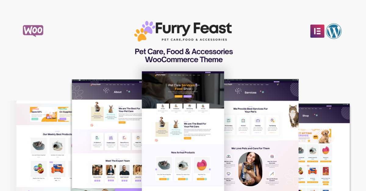 Furry Feast - Šablona Elementor WooCommerce pro péči o domácí mazlíčky, krmivo a doplňky