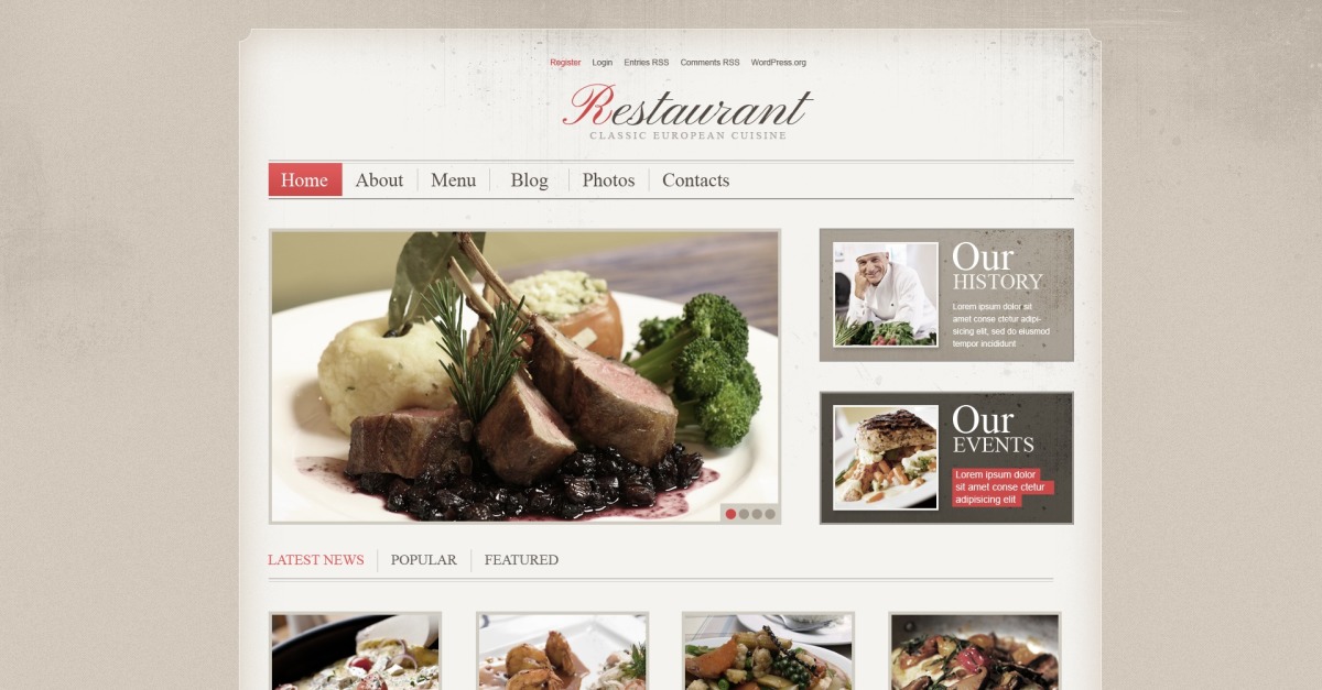 Zdarma téma WordPress Cherry Cafe and Restaurant