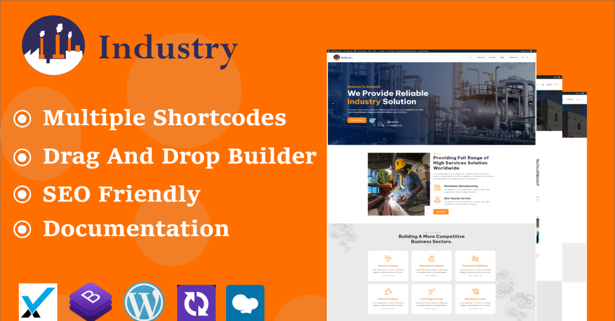 Téma WordPress Průmysl – Průmysl a Podnikání v továrnách