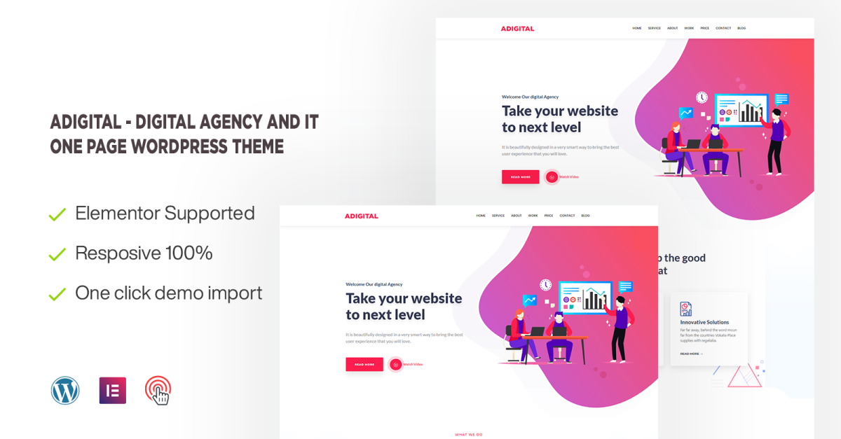 Adigital – Digitální agentura a IT Jednostránkové téma WordPress