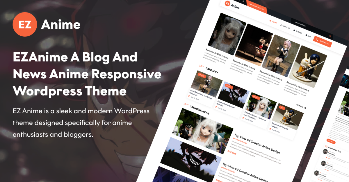 EZAnime Blog a novinky Anime Responsive Elementor wordpress téma