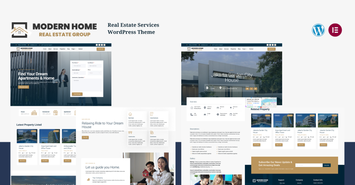 Moderní dům - Realitní služby & Agent WordPress Téma
