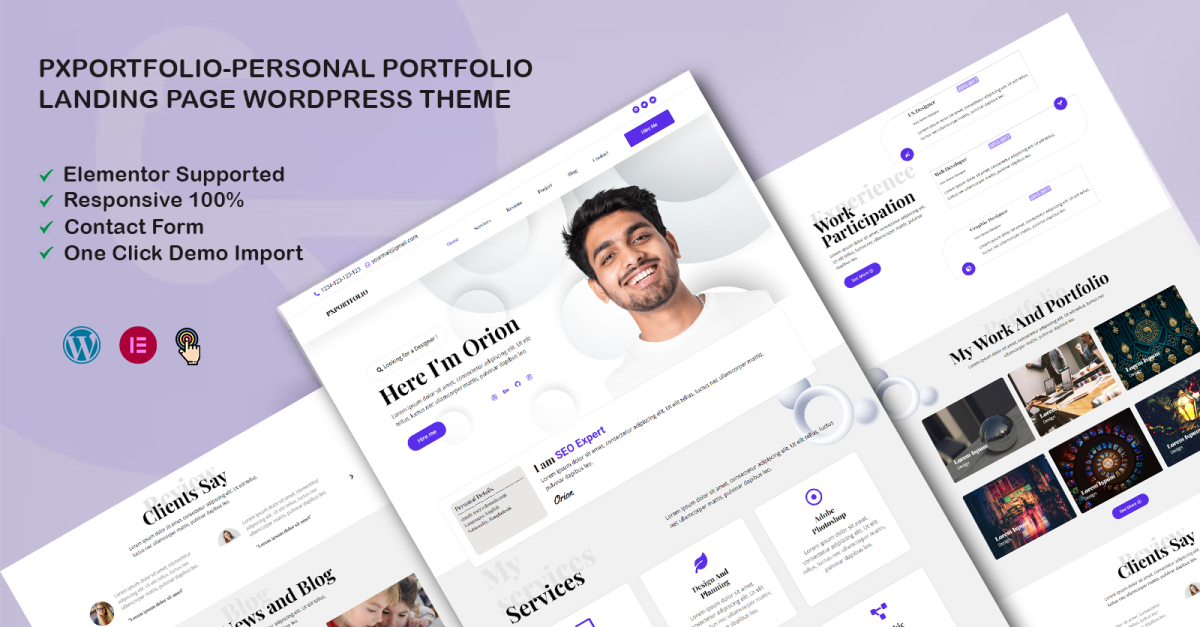 Pxportfolio - Osobní portfolio Vstupní stránka WordPress Téma