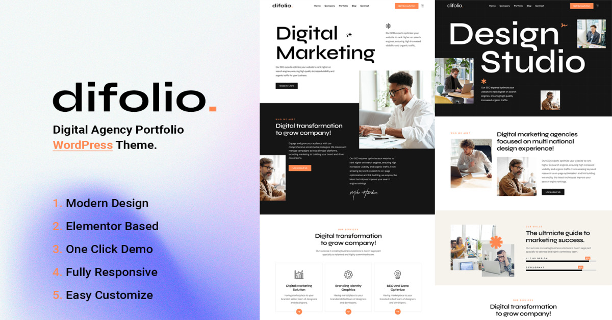 Difolio – téma WordPress Creative Portfolio digitální agentury