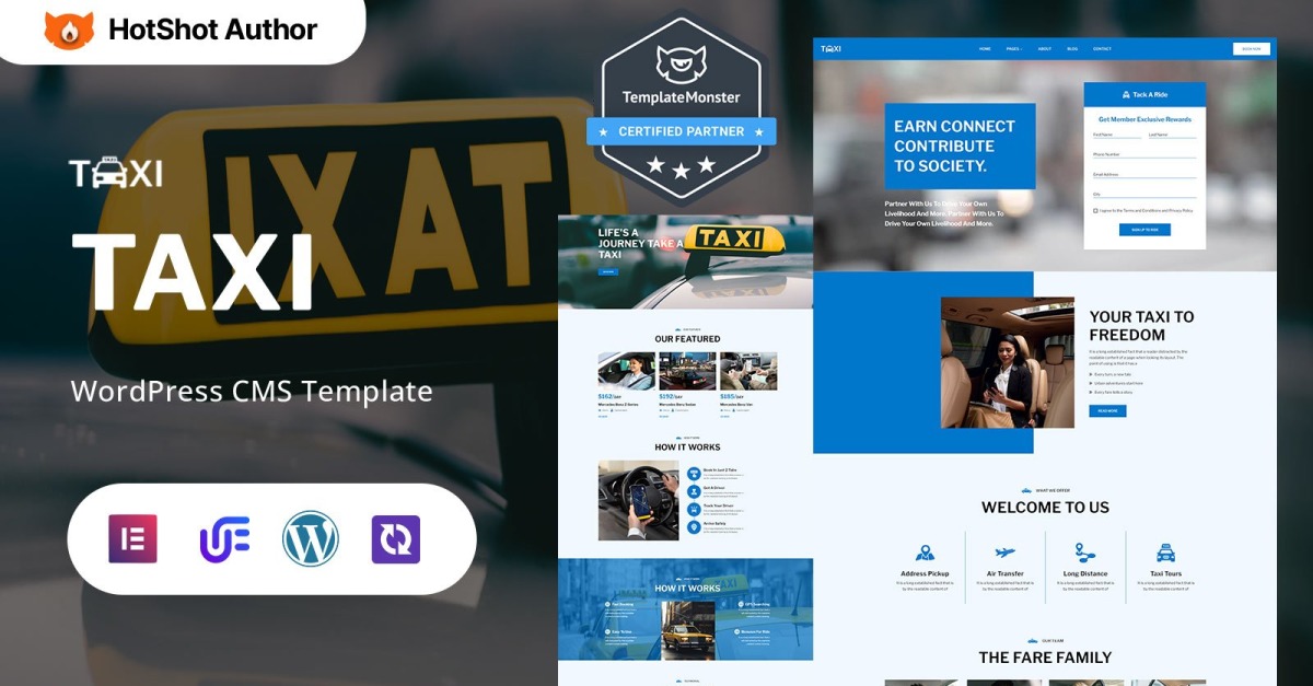 Taxi - Městské taxi, doprava a služby řidiče Téma WordPress Elementor