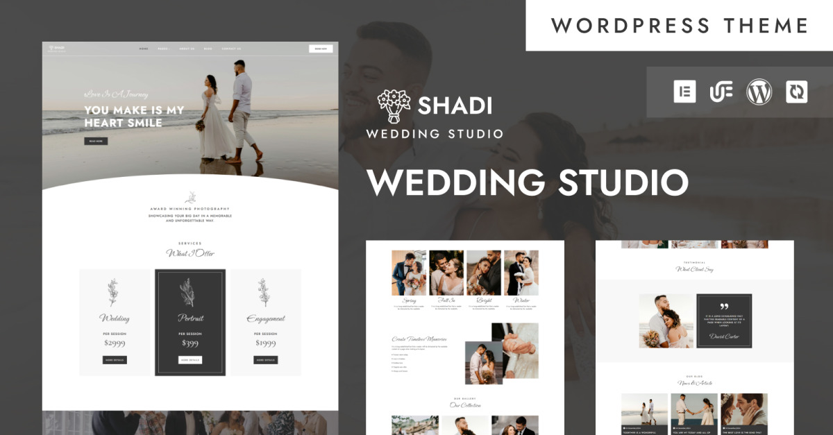 Shadi - Svatební studio, fotografie a videonahrávka WordPress Elementor Theme