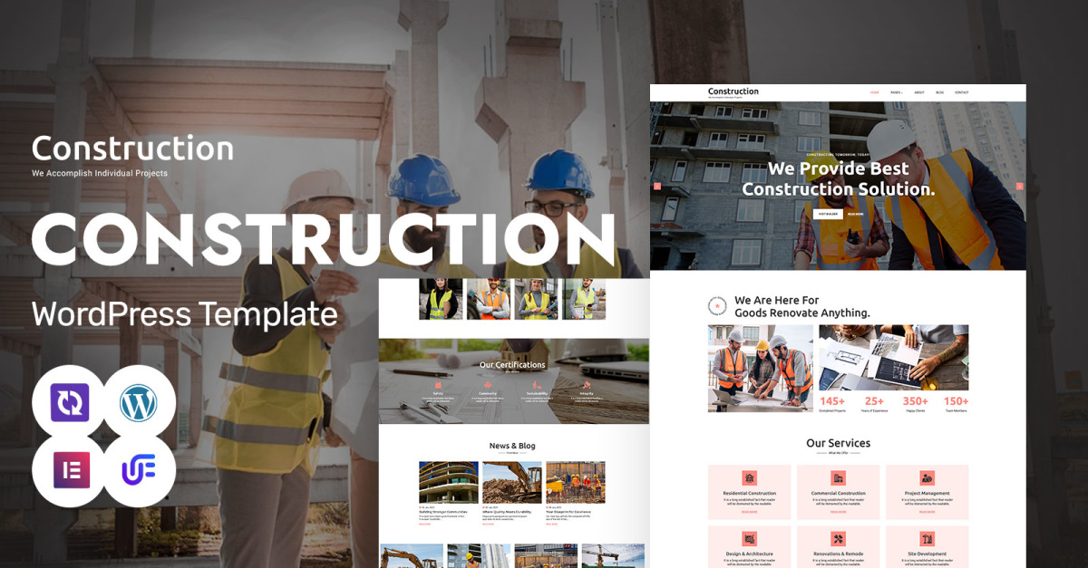 Konstrukce – strojírenství, stavitel a architektura téma WordPress Elementor